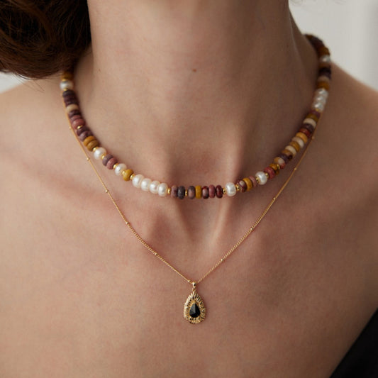 S925 Silver Natural Moonkaite Gem Pearl Necklace in Melange Style NMX1001