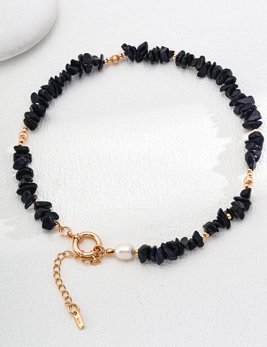 S925 Silver Natural Blue Sandstone French Vintage Necklace (necklace/bracelet 2Way) D0530-2