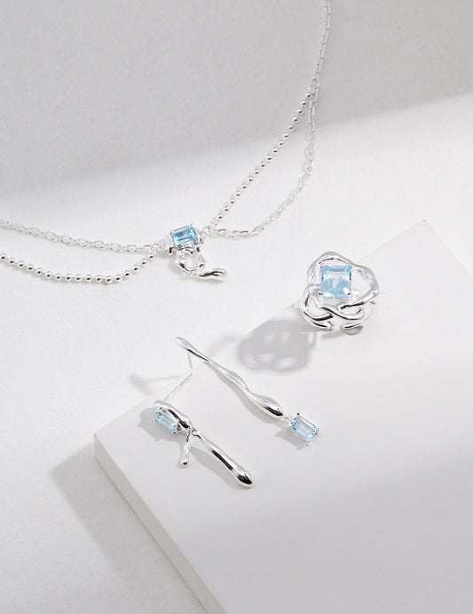 “Breath of Spring”925 Silver Natural Topaz Necklace D0244